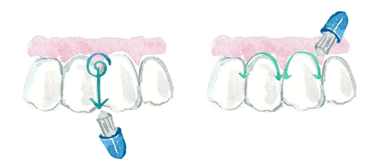 やさしく磨くゴシゴシ強く磨くと、歯ブラシの毛先が寝て汚れが落ちにくくなるばかりか、歯ぐきを傷めてしまいます。「やわらかい歯ブラシでやさしく磨く」を意識することが大切です。