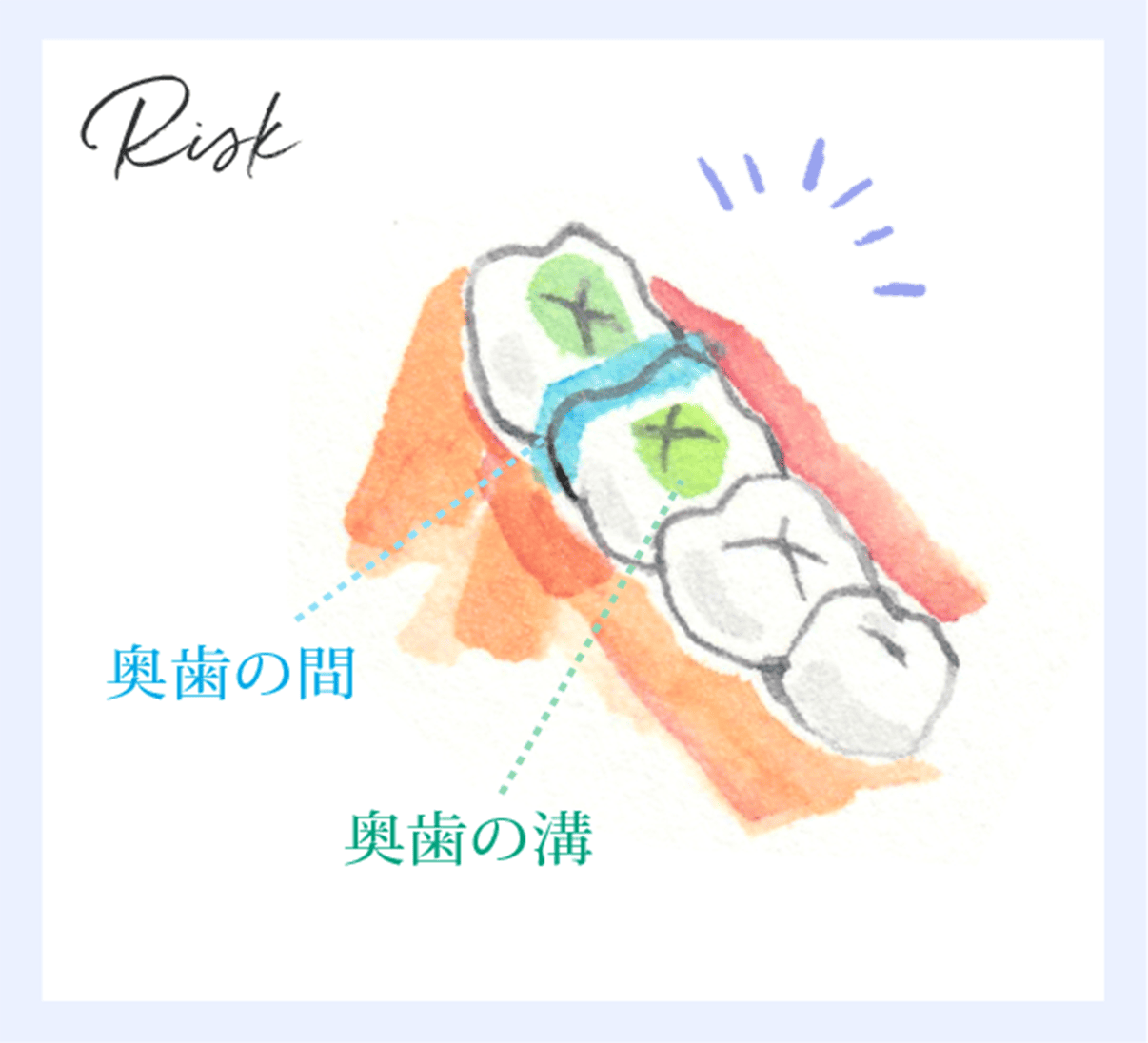 歯には傷つき汚れやすい場所があります(リスク部位)。